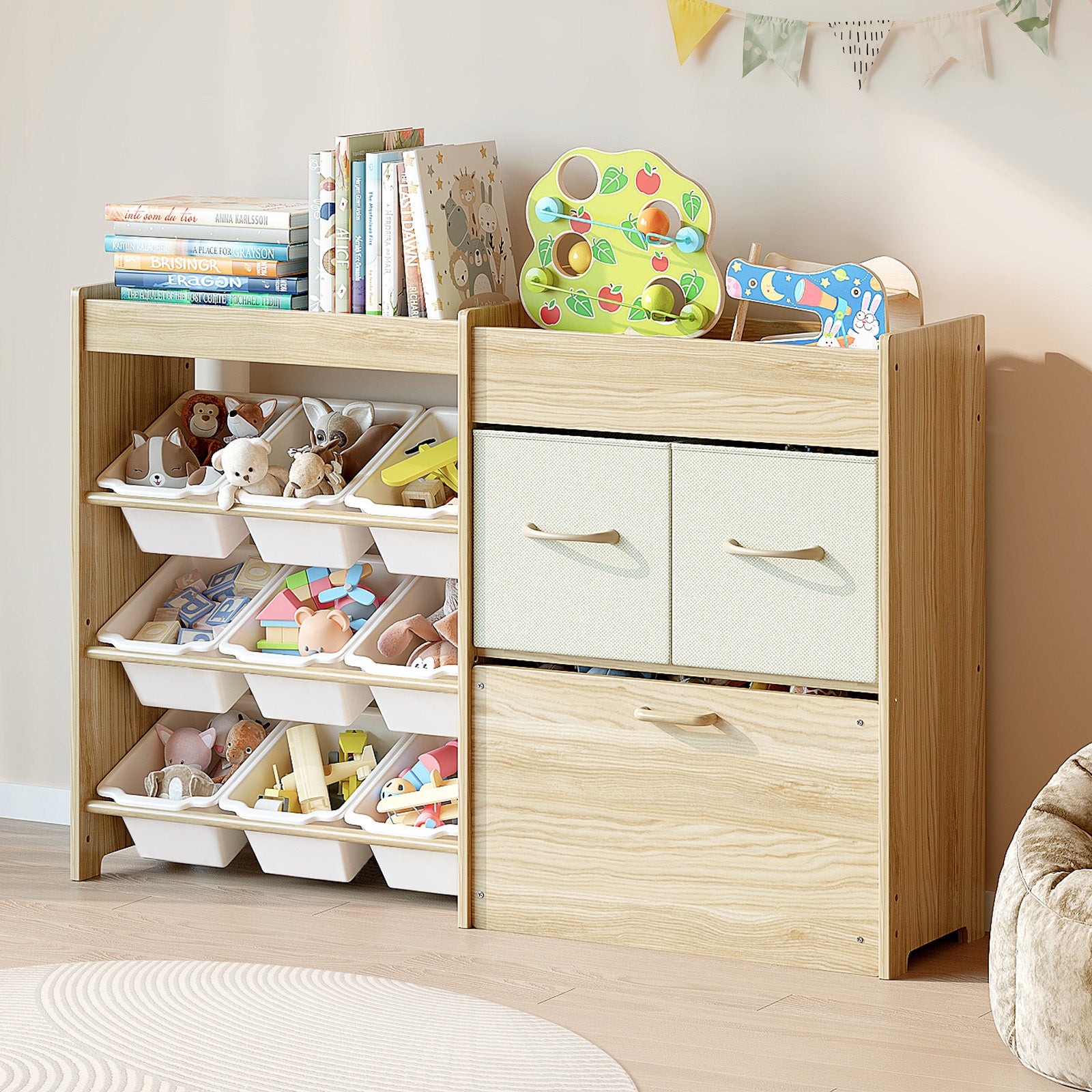 Solid Pine Wood Toy Storage Organizer - Toy Organizers And Storage With Bookshelf, Kids Bookshelf And Toy Storage For Kids Room, Playroom, Nursery